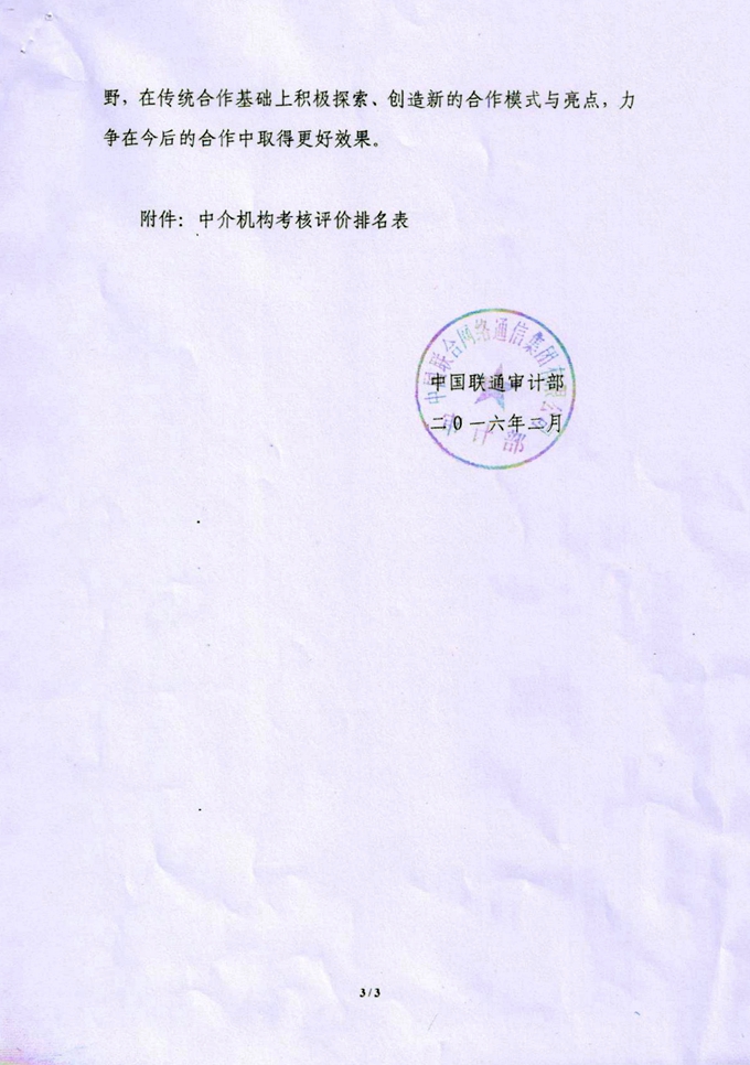 | 關于中國聯通2015年工程審計中介機構考核情況的通報 | |