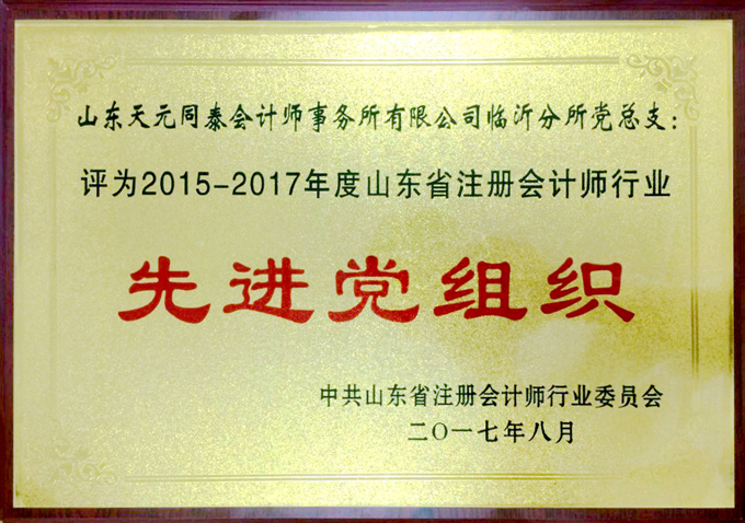 祝賀“同泰”獲得山東省“先進會計師事務所黨組織”榮譽稱號